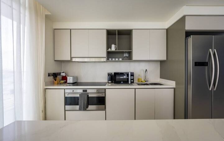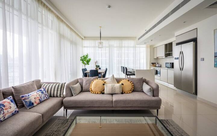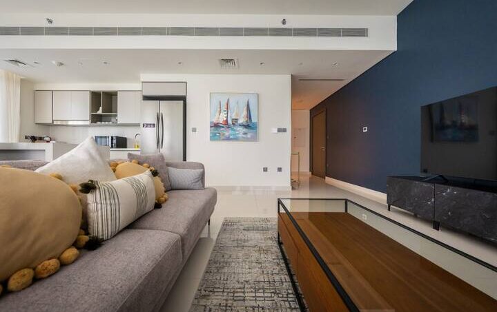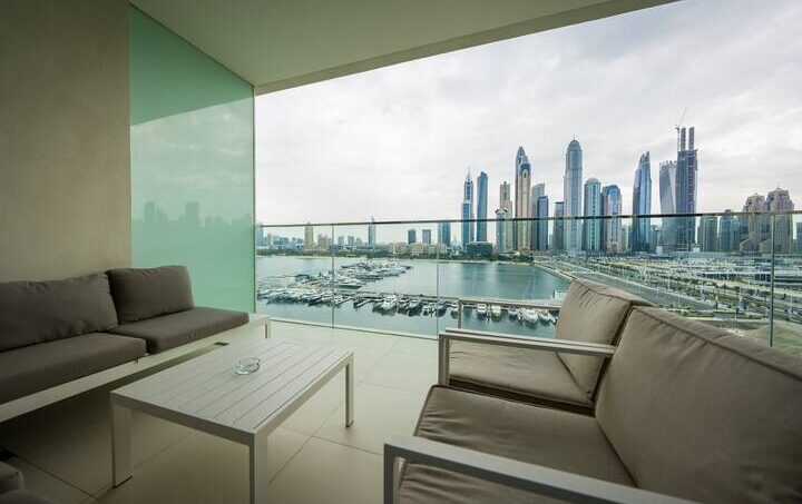 Escape to a luxurious beachfront getaway with stunning marina views in our spacious 3-bedroom apartment in the Sunrise Bay Tower building on the Palm Jumeirah. Perfect for a family stay, this apartment offers modern furnishings, a fully-equipped kitchen, and large balconies overlooking the Arabian Gulf and Dubai skyline, providing the ultimate comfort and relaxation.