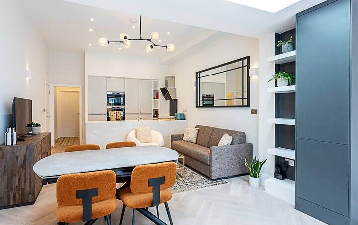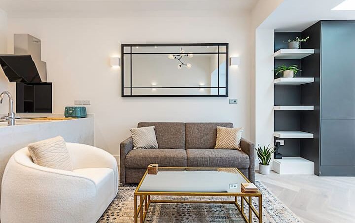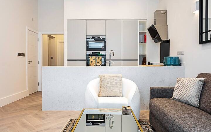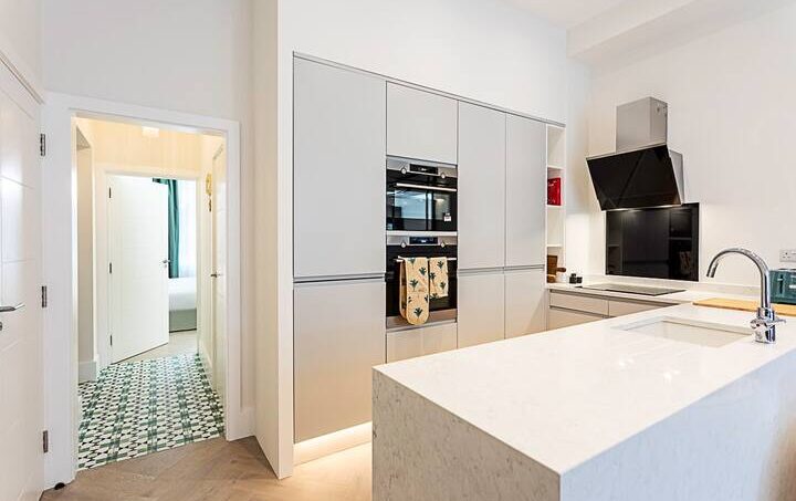 The living room is equipped with a comfortable sofa, a dining table and a Smart TV. The kitchen is fully equipped with modern appliances and includes all the cooking utensils that you could need when preparing a quick snack or your evening dinner. The bright bedroom(s) are equipped with a super king and double size bed, with bathrooms equipped with a bathtub with an overhead shower and a free-standing shower.