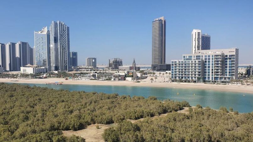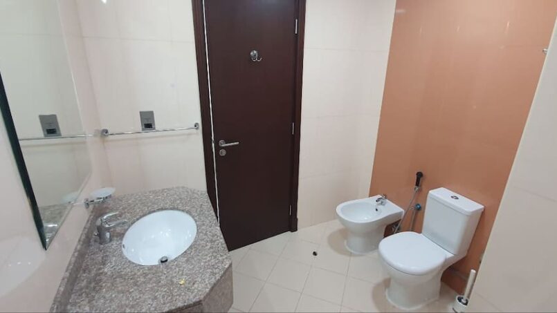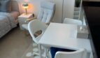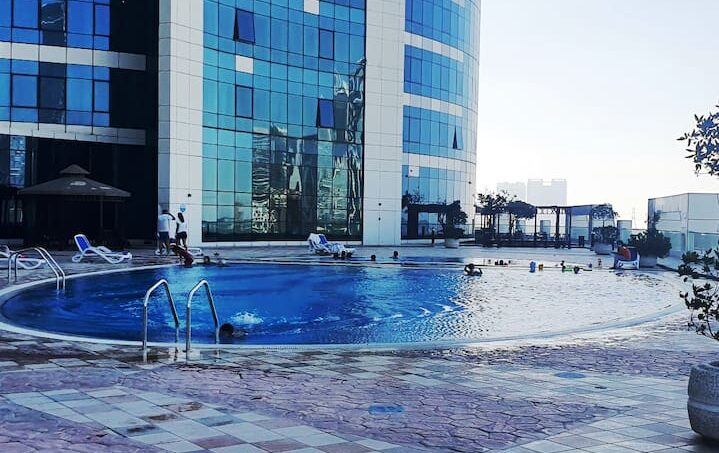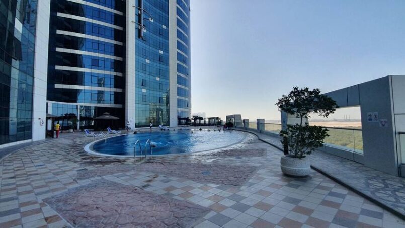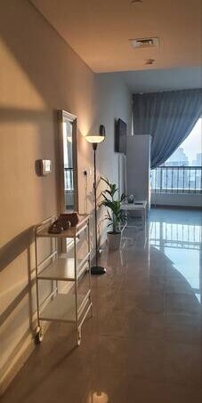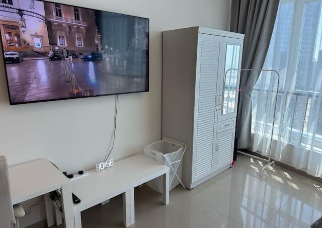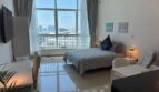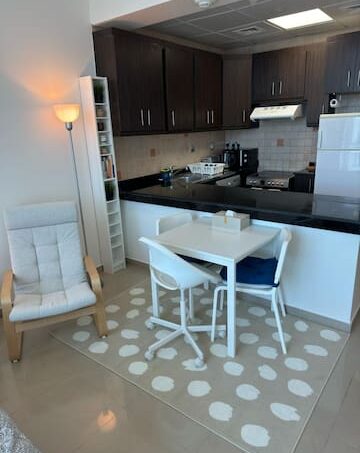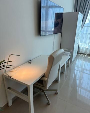 White-themed fully furnished studio. In Reem Island in Abu Dhabi. With a private free parking spot, access to a swimming pool, GYM, playground, courts, and beautiful walk.