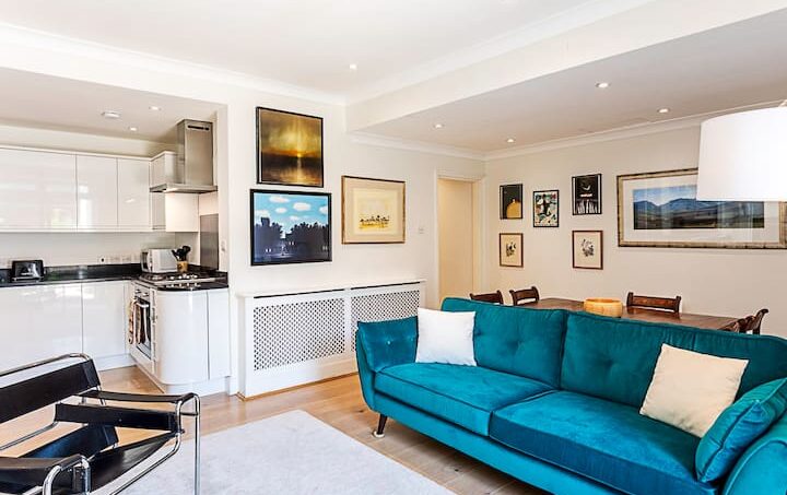 This two-bedroom apartment is situated in the idyllic neighbourhood of Earls Court, in the Royal Borough of Kensington and Chelsea (one of only three Royal Boroughs in the UK). The property is also just 100 meters from Earls Court Underground Station, making this property the perfect location for your stay in London.