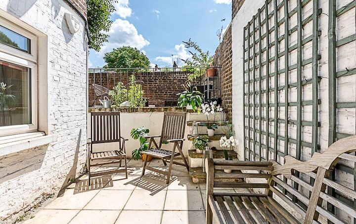 Stylish two-bedroom apartment with a patio, located in Earls Court, in the Royal Borough of Kensington and Chelsea