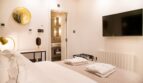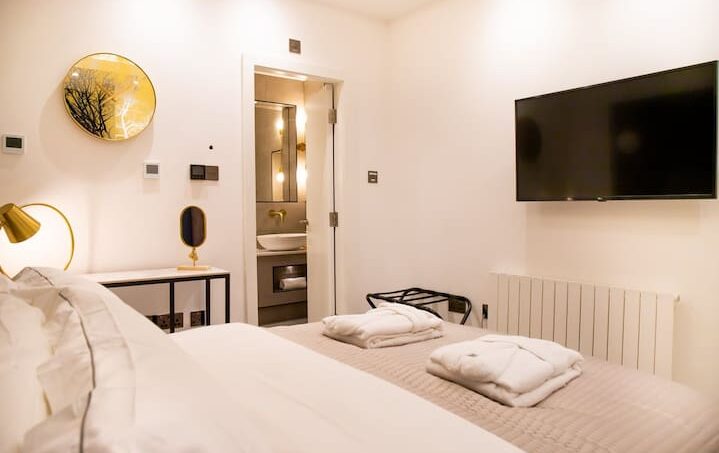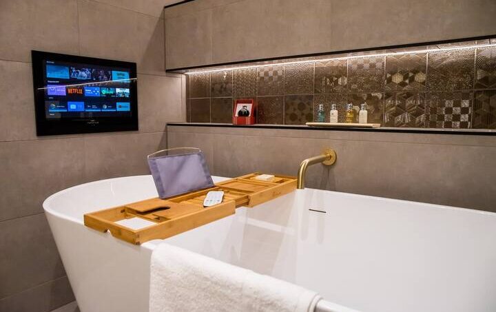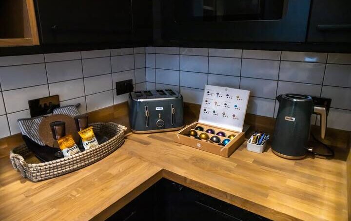 Indulge in the ultimate luxury experience with our 1 bedroom apartment, located in the heart of Kirkgate LS1. This stunning apartment on the 1st floor of Kirkgate Suites, is designed to impress with its perfect blend of style, comfort, and convenience. Step inside and be amazed by the attention to detail, from the fully equipped kitchen with a washing machine and fridge freezer, to the elegantly furnished bedroom with a comfortable double bed. Relax in the stylish living room, perfect for unwinding after a long day. And don’t forget to pamper yourself in the luxurious bathroom with his and hers sinks and a free-standing bath tub with a built in smart tv, complete with fresh luxury towels, high-quality linen, and premium toiletries.