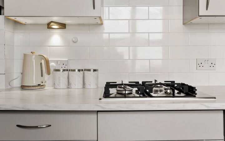 The kitchen is modern and fully equipped with all the appliances you need, plus plenty of storage and counter space.