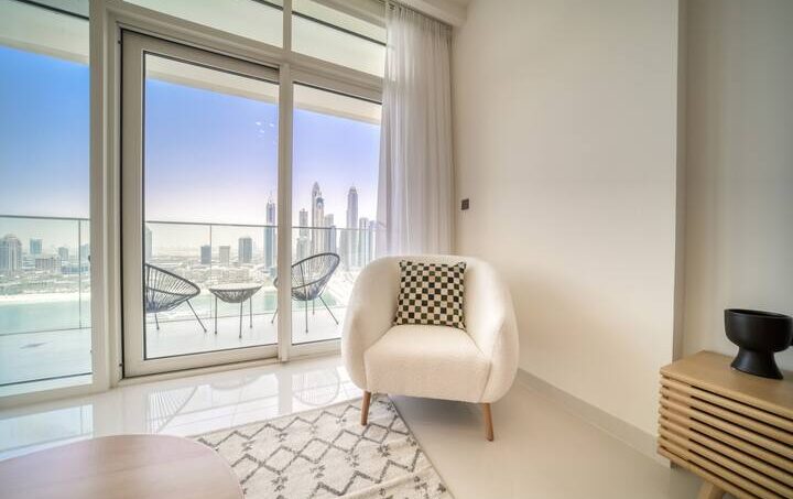 Lavish in the luxury of a private beach on the Emaar Beachfront, Dubai’s newest location. Include the bonus of overlooking the Dubai marina skyline. This contemporary stunning apartment reflects luxury modern living with large windows allowing for natural light to flow through the living space and sitting adjacent to one of Dubai’s most trailblazing attractions, the palm-tree sculpted archipelago of the world-famous Dubai Palm.
