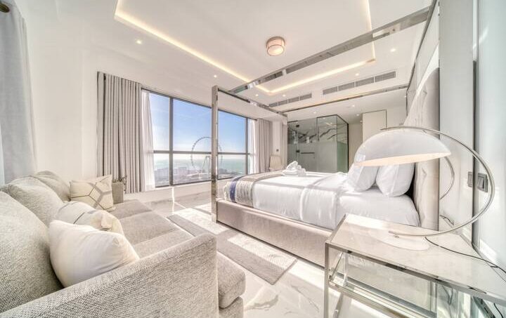 Imagine waking up on a summer morning to see Ain Dubai, the world’s tallest observation wheel, and having a spacious, luxurious interior and top-of-the-line amenities. There’s no doubt that staying here is an excellent way to explore the city, as it’s located in the heart of JBR, close to world-class shopping, dining, and entertainment. You can take a dip in the beach just steps away, as well as explore attractions such as The Walk and Madame Tussauds.