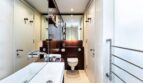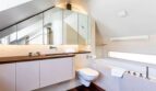 On the top floor, the master bedroom comes complete with a king-size bed, air conditioning and an en-suite bathroom. The spacious bathroom features a bathtub as well as a stand-in shower.