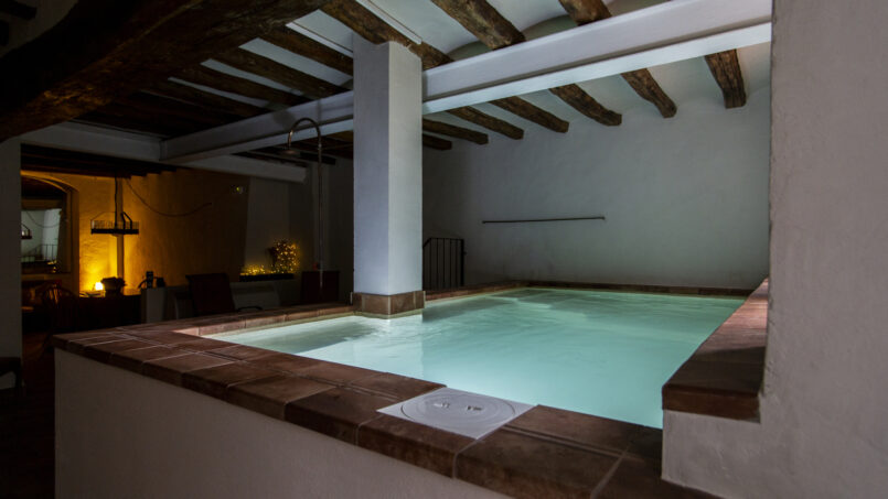 Included in the price, you will have access to the indoor heated communal swimming pool, but exclusively for you during the hours you book it. It is open 24 hours a day and is set to a pleasant and welcoming selection of music by DJ Enric Canadell of Feelgood Music, adapted to 432 Hz tuning. The music played in this tuning balances and elevates the energy.
