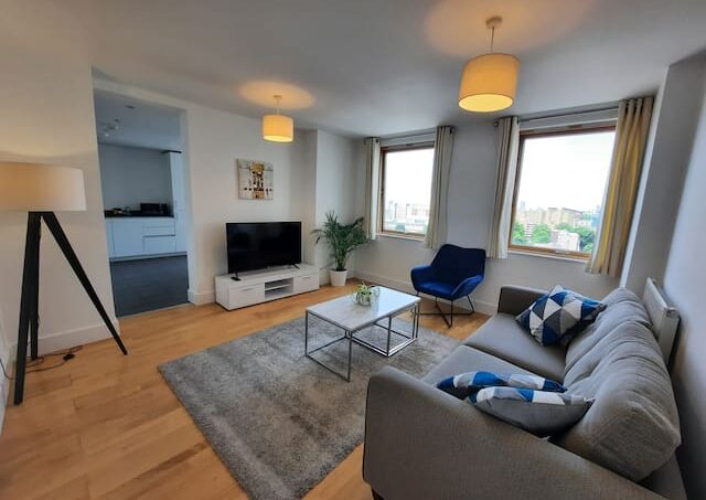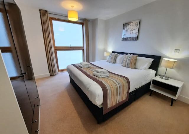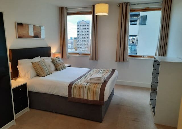 Ideally located for a business or leisure trip. This 10th floor apartment set within this well regarded building is within 3 minutes walk of South Quay DLR, 6 mins to Canary Wharf tube and all the bars, restaurants and shops in central Canary Wharf. The apartment is bright, spacious (both bedrooms are generous sizes ) and is fully equipped with everything you will need. Added bonus of a balcony with views south across London. The building has passenger lifts and a 24 hour security office.
