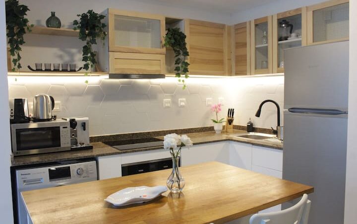 There is a jacuzzi and an outside swimming pool with sunbeds available in the bulilding on the 2nd floor. Last floor has a huge gym with cardio machines and weights. There is a sauna too. You won t get bored 😉