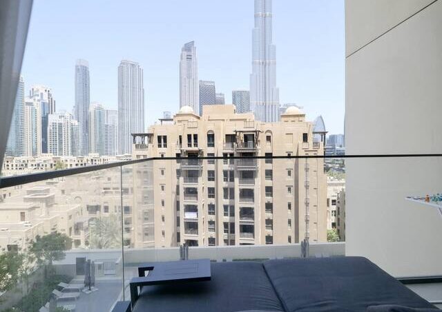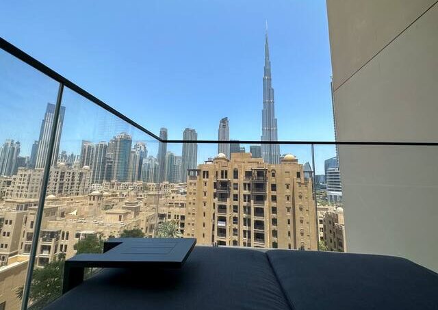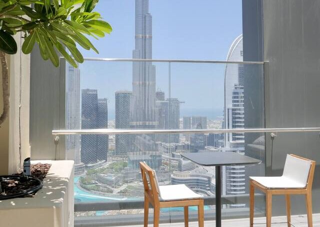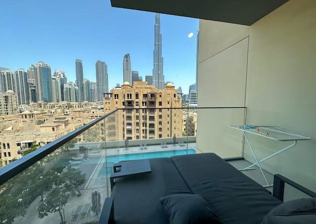 – Terrace with iconic views: Relax on the spacious terrace, enjoying panoramic views of the majestic Burj Khalifa and the inviting pool area.