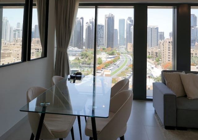 – Floor-to-ceiling windows with a view of the iconic Burj Khalifa