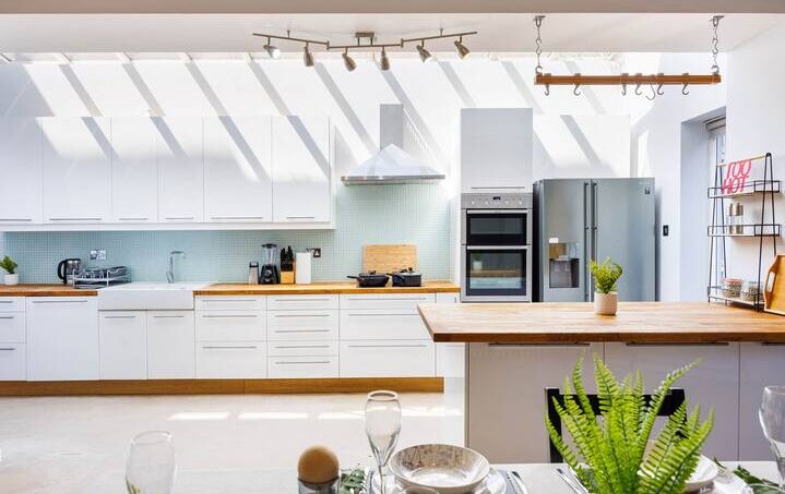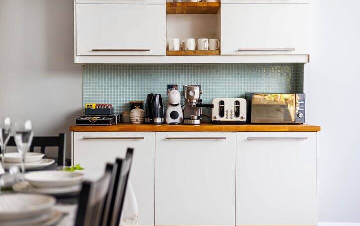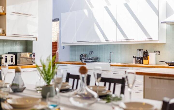 It is fully equipped with state-of-the-art cooking appliances that make it suitable for preparing any meal, whether a simple breakfast, quick snack or a three-course gourmet dinner. Spacious wooden countertops and the central kitchen island provide plenty of room to work your MasterChef magic.