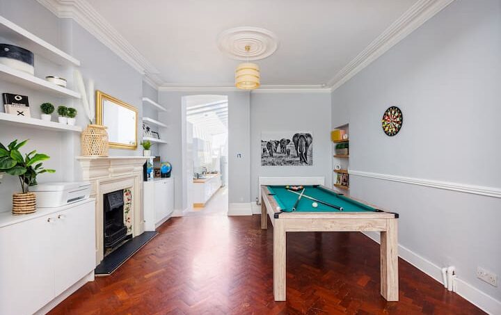 When you had enough of the outdoors, pop back into the living room and play a few games of pool to decide who takes the crown of the London vacation champion.
