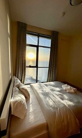 Enjoy breathtaking views of the sea and sunset from the huge living room and balcony.