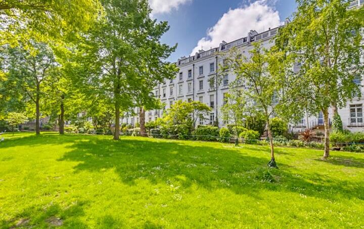 stucco fronted period building, with a private patio garden & access of exclusive communal gardens.