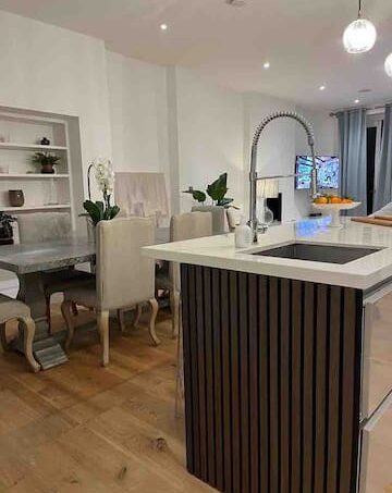 This stunning three-bedroom maisonette set over the raised and lower ground floors of a stunning white