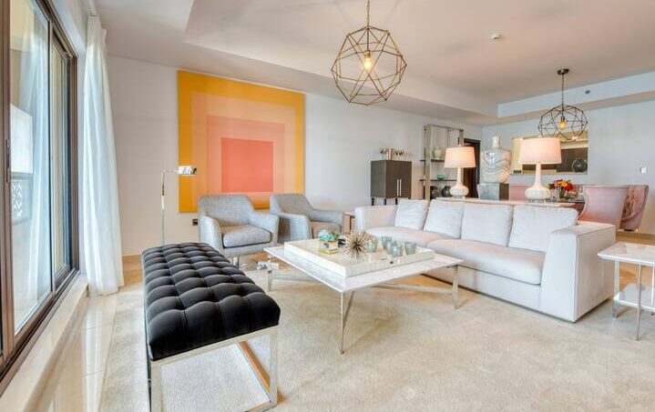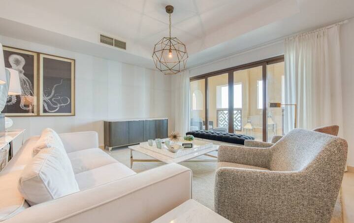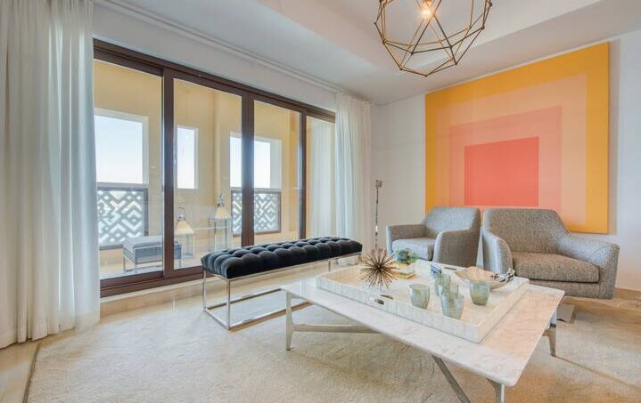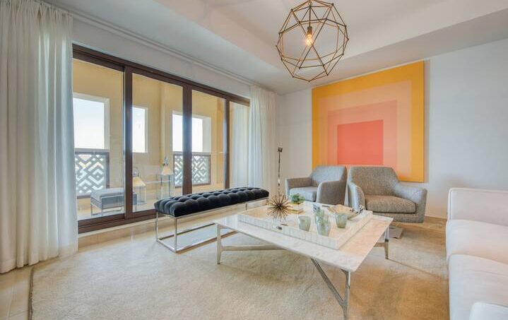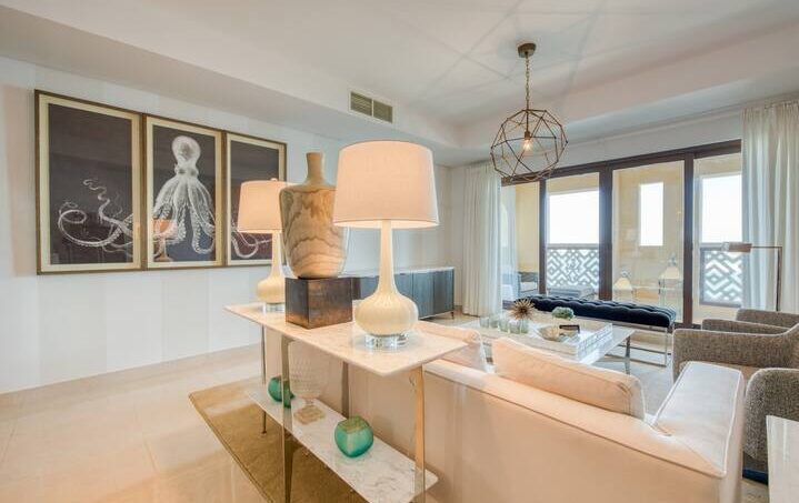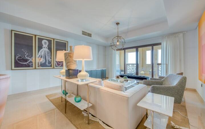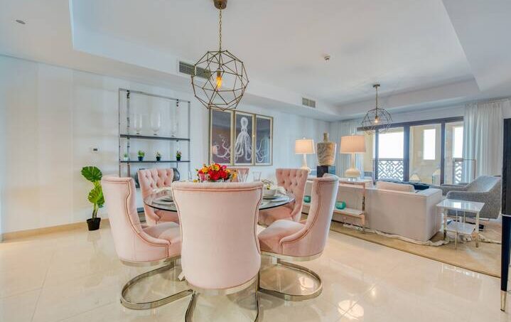 This contemporary stunning apartment reflects Arabia’s ancient cities with a side of its glistening modernity, sitting adjacent to one of its most trailblazing hotels, the Atlantis. Hop onto the mainland in just 15 minutes for Dubai Marina, Jbr and the metro to go further afield.