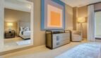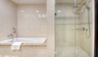 The second bedroom is also furnished to an exceptionally high standard featuring modern art, a queen-size bed, premium bedding, side-tables, a window bench and lamp lighting. The en suite bathroom is fitted with a walk-in shower and premium fittings.