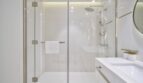 For a room that provides tranquillity and relaxation in all the right ways, relax and recoup in this stunning master suite with its very comfortable bed, premium bedding and bedside tables. The en-suite bathroom has its private bathtub with shower, alongside his and her sinks allowing for a relaxing stay.