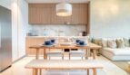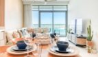 Enter to breath-taking blues flooding in from the ocean beyond – the dedicated dining area is furnished with a table to seat four, floor to ceiling windows providing sparkling sea views and a furnished balcony to enjoy the sea breeze.