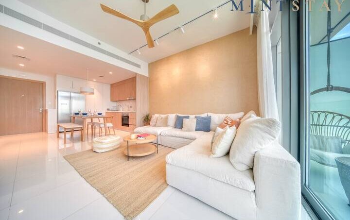 Lavish in the luxury of a private beach on the Emaar Beachfront, Dubai’s newest location. Include the bonus of overlooking the Dubai Skyline. This contemporary stunning apartment reflects luxury modern living with large windows allowing for natural light to flow through the living space and sits adjacent to one of Dubai’s most trailblazing attractions, the palm-tree sculpted archipelago of the world-famous Dubai Palm.