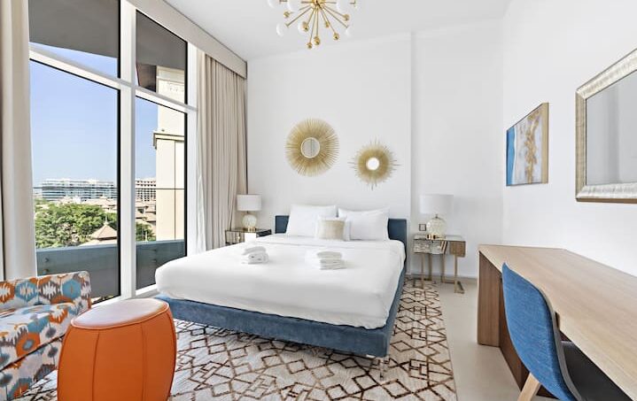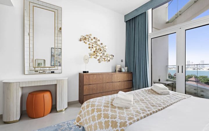 Dreaming of waking up by the sound of ocean and a sunny blue sky? Come over and enjoy a hot cup of morning coffee with a sea breeze on a large terrace of our property overlooking the iconic Atlantis Palm Jumeirah and Burj Al Arab.