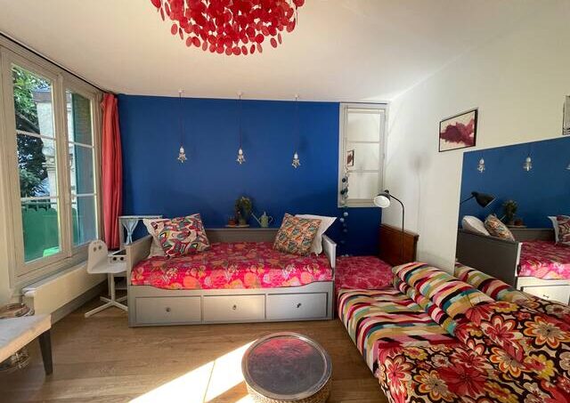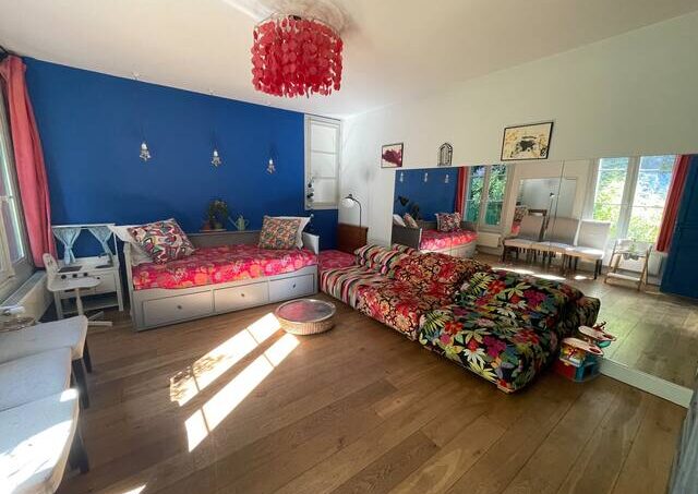 cette maison stylée, 100m2 avec son petit jardin verdoyant et privé 80m2, se trouve à 1 minute à pied de la ligne 1 et à 3 minutes à pied du RER A. Il permet donc de rejoindre facilement plusieurs sites touristiques et le centre de Paris (Opéra 13 mins, Champs Elysées en 20 min, Disneyland en 30), 20 minutes du Louvre et à 10 minutes de la Gare de Lyon,40 minutes en métro de la Tour Eiffel. L’appartement comprend trois chambres, un salon peut être fermé avec un canapé-lit comme une chambre.
