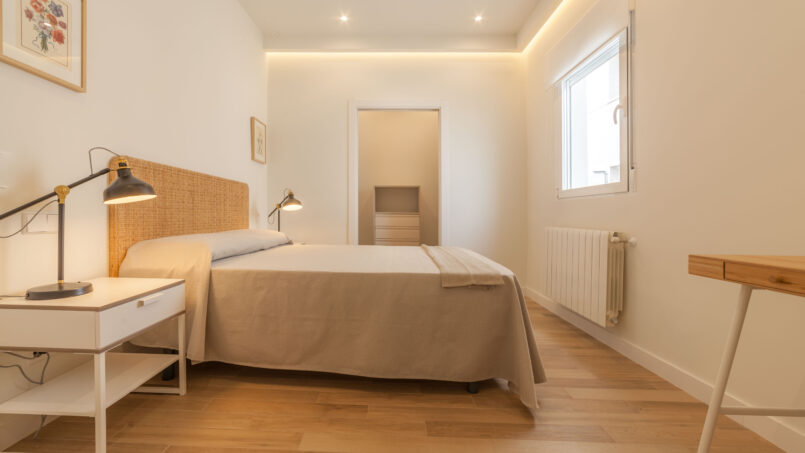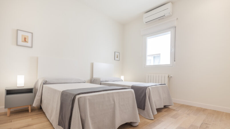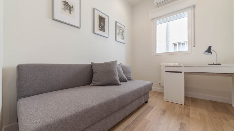 Take the sun, and enjoy the best sunsets and magnificent city views from this incredible apartment. With 114m2 completely equipped space for your comfort, this apartment has a principal bedroom with a perfect double bed to take a rest after a long day. A bright bathroom inside of the room with a shower and a bath included and a comfortable dressing table to always look impeccable. You can also have an additional bedroom with two individual beds to invite your children or Friends to this new adventure in the capital. Enjoy also two comfortable desks, a huge kitchen with an interior dining room, a living room with an exterior dining room, and the great 18m2 outdoor terrace, that will make your stay in Madrid an experience close to being at home.