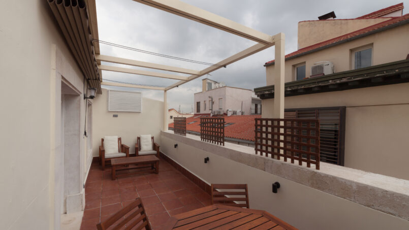 Bright fully equipped and renovated apartment in the historical neighborhood of Las Letras. Enjoy the beautiful views of Madrid from the huge outdoor terrace of this modern apartment in the heart of the capital.