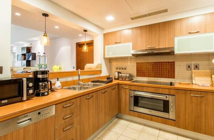 There is no direct connection between Palm Jumeirah and Metro, but the apartment is only a short taxi ride from the metro station. There is however, a link with the Dubai Tram system via a footbridge between Gateway Station and Palm Jumeirah Tram Station. The Dubai Tram network is connected to the Dubai Metro at two stations Dubai Marina Tram Station and Jumeirah Lake Towers Tram Station. Metered Taxi is available around the clock on the street in the front of the apartment or you can book one using the RTA phone line. Ride-hailing services like Uber and Careem are available with a click of a button.
