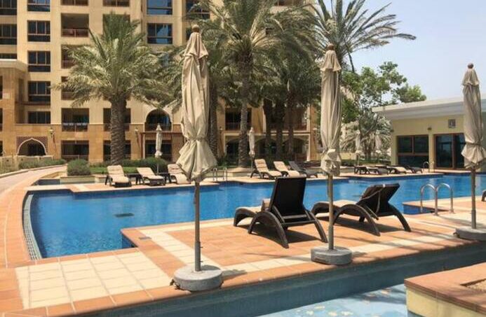 The property boasts ample living space with built in open type kitchen with all appliances. Both the bedrooms are en-suite and the unit comes with a covered and dedicated parking spaces. The large covered terrace with comfortable furniture boast of amazing view of the Luxury Yacht Marina, Palm Jumeirah and a large exclusively manicured garden with swimming pools, clean and very neatly maintained.