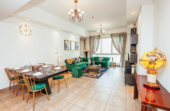 Marina Residences is a spectacular waterside development in Palm Jumeirah. This Marvelous furnished 2 bedroom Apartment Hosted by Our property, is one of the six residential towers located in the Palm Jumeirah, worlds largest man-made island. The island features beachfront properties, including waterfront apartments, villas, restaurants and hotels, all with spectacular views of the sea.
