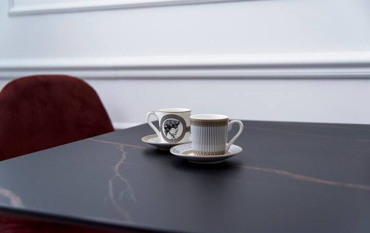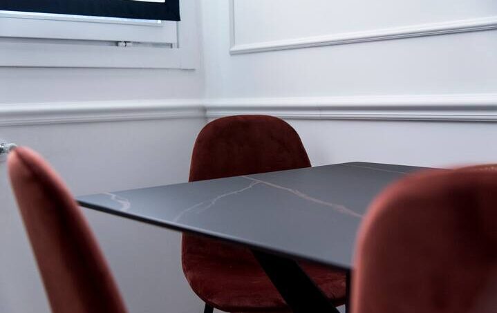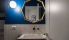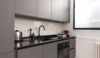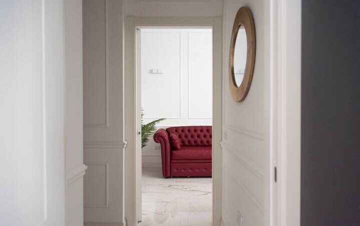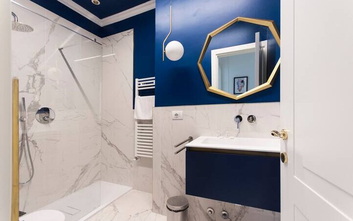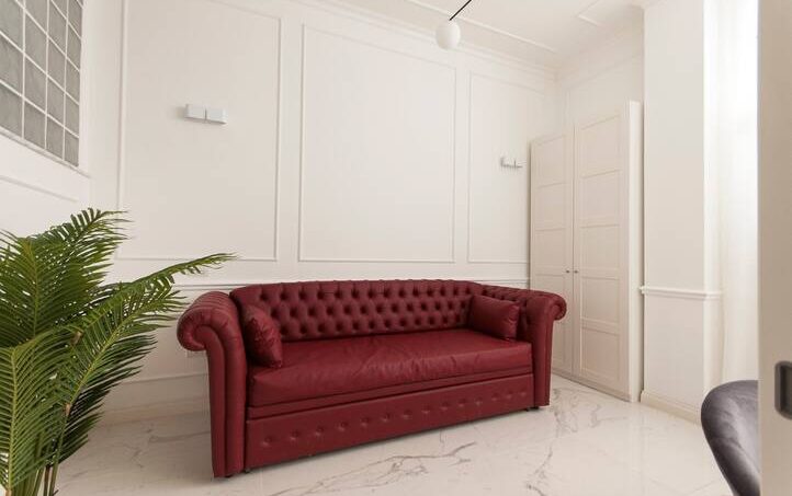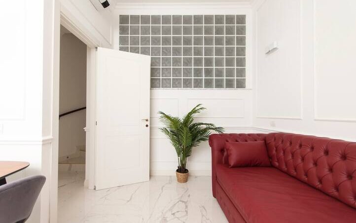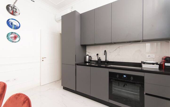 The apartment is finished with fine marble and refined furniture.