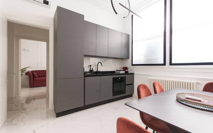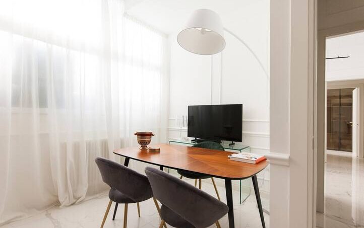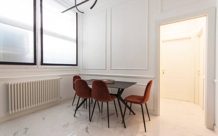 The property is located in the center of the city of Milan in the famous Design District. A short walk from the San Babila stop and the Duomo, it allows you to reach every area of the city with ease. Inside we have a living room with sofa bed, a dining area with fully equipped open kitchen, a study that acts as a second bedroom with double sofa bed, a double bedroom and bathroom with shower.