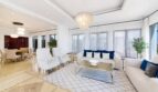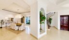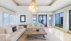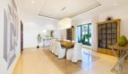 Set apart from the other villas on the Frond, this property has been thoughtfully designed to maximise on space and luxury. You will enjoy two separate lounge areas, both with sofas and other seating, a TV and lamp lighting. Guests may access the garden or private pool from the opened living space. There is a small breakfast table to seat four beside the modern kitchen with all the necessary appliances for a seamless stay. The main dining area is furnished with a table to seat eight comfortably, buffet units and modern mural art.