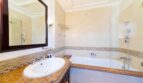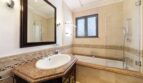 The master suite has its very own privatised shaded terrace as well as all the luxury inside containing a king-size bed, TV viewing area featuring a sofa and large flat-screen TV. The walk-in-wardrobe has ample space for all of your holiday essentials and leads to the master en suite, with fitted Jacuzzi tub, large sink area and shower unit.