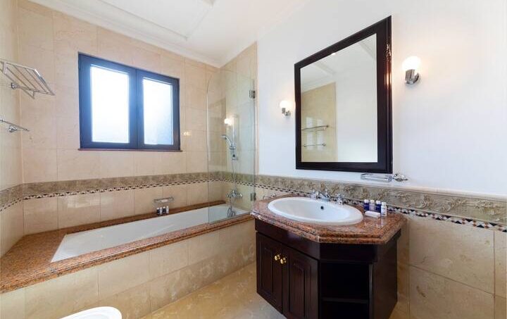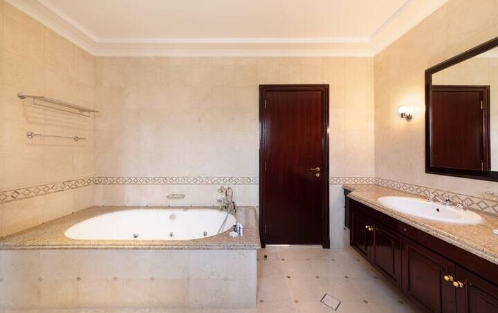 Guests can enjoy every part of this villa’s bountiful luxury such as its private pool, patio, and garden that leads on to the beach as well as an outdoor separate bathroom. As part of one of Dubai’s most exemplary developments, The Palm Jumeirah, this villa has supermarkets that deliver, beauty parlours close by, barber salons and even a tailor.