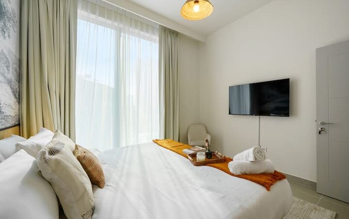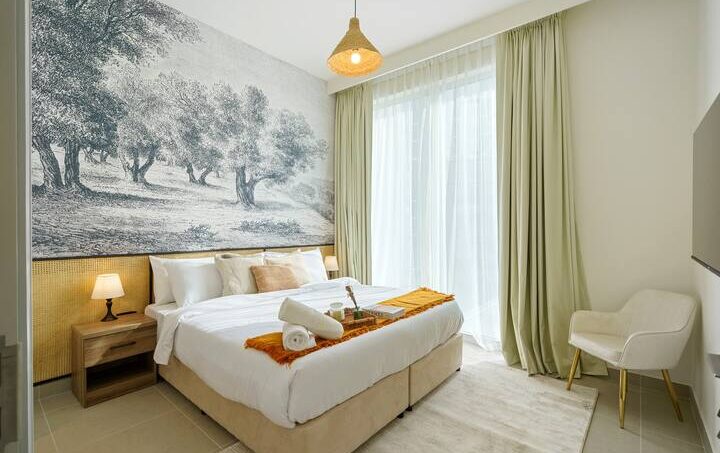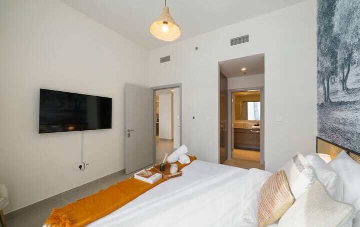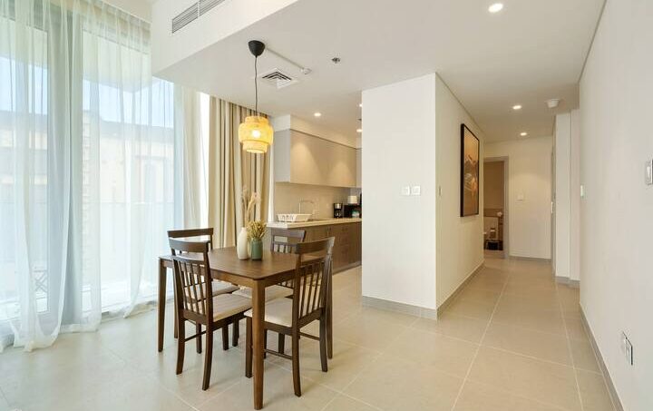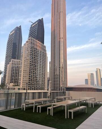 Experience luxury and comfort in this immaculate retreat minutes away from the breathtaking Burj Khalifa, Dubai Fountain and Dubai Mall. The modern apartment has 2 bedrooms, 2 full bathrooms, and a well-equipped kitchen. Enjoy top-notch amenities like a flat-screen TV, Wi-Fi, swimming pool, BBQ pits, pool table, foosball table and a fitness center. Explore Dubai’s attractions from our prime location. Book now for an unforgettable stay in Downtown Dubai with Dash Stays.