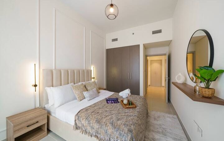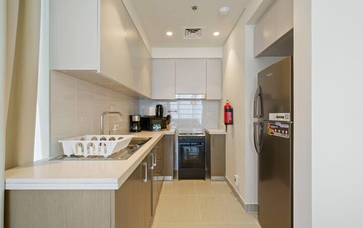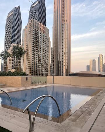 The Dubai Mall is just minutes away, with a connection that allows you to reach it seamlessly. The complex offers numerous amenities to enhance your stay, including a spacious pool, a well-equipped gym, a children’s play area, and more.