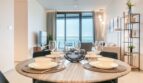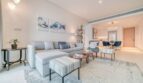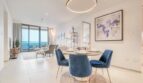 As you step into the living area of this apartment, get ready for a warm hug of elegance and comfort. The space flows seamlessly, connecting the kitchen and dining area for an open and inviting vibe. Feel like sinking into those plush couches or cuddling up in the stylish accent chair? They’re your go-to buddies for TV time – cozy guaranteed! And those wooden coffee tables? They bring a dash of class to the scene. Time to tame your tummy rumbles? Rally the troops around the dining table, because the fully equipped kitchen is all set for action. And as the sun takes its final bow, let yourself be enchanted by the shimmering sea lights and the magical view of Palm Atlantis.