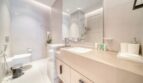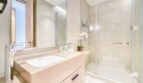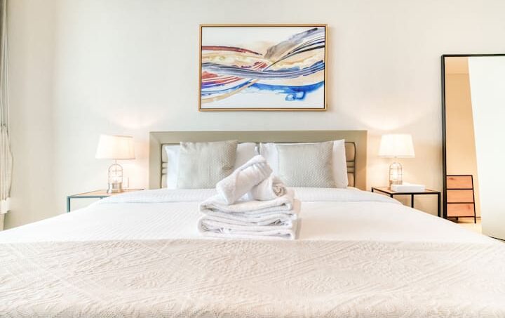 Indulge in the lap of luxury within the master bedroom, boasting an opulent ensuite bathroom. Natural light pours in, highlighting the king bed’s serene allure, adorned with lavish linens and sleek side tables. And guess what? The boredom bug? It’s banished, thanks to the TV hanging out here – perfect for your Netflix binges. If you’re all about creative vibes and room to stow away your treasures, this space is tailor-made. Plus, storage isn’t the only treat – the ensuite bathroom spoils you with a tub and a showerhead, for that spa-worthy indulgence.