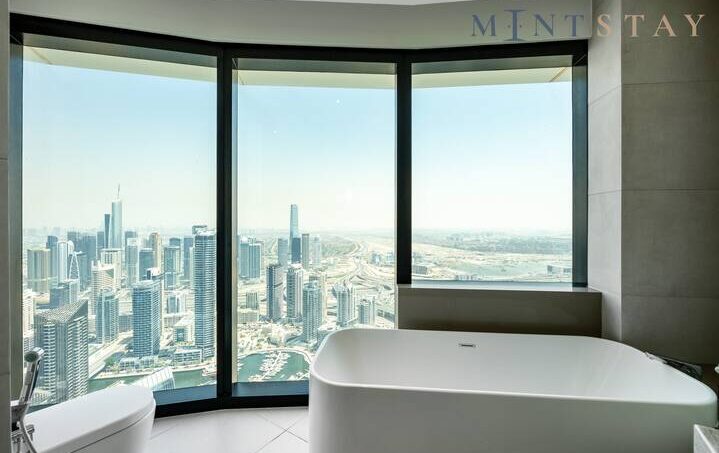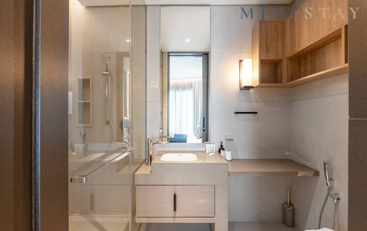 Sightseeing can be so exhausting, but not when you have a bedroom like this waiting for you! You’ll find a king-size bed with the softest sheets and pillows, along with a view of Dubai Marina from the window. Sure, the beach sounds nice, but wait until you experience the en suite bathroom! It features a walk-in shower that’ll wake you up feeling like a million bucks. And speaking of feeling good, the wardrobe is massive – perfect for keeping your vacation style on point. After all, you came to Dubai to slay, right?