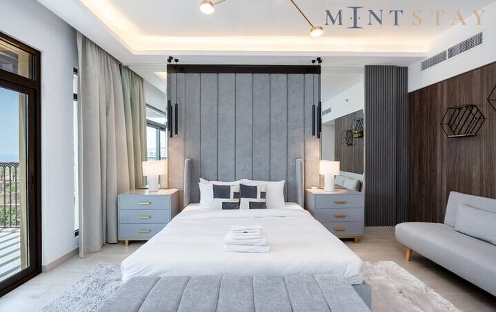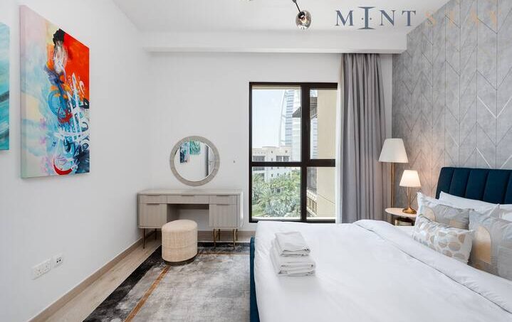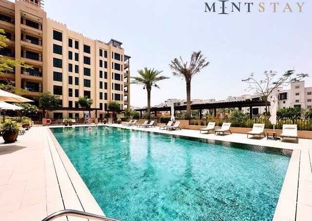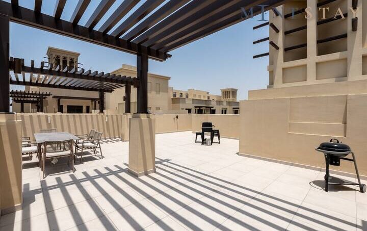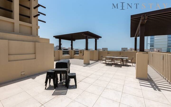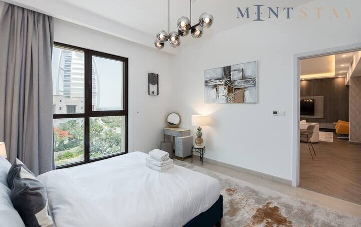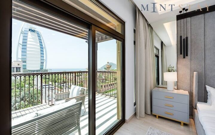 One of the must-dos when visiting Dubai is to see the renowned Burj Al Arab, often called a seven-star hotel. How about staying in a premium space within walking distance from this masterpiece? This space will spoil you with its full view and high-end furnishings. Make sure to pack your SPF, as you may want to swim all day with the Burj Al Arab in view or keep fit in the gym while away from home.