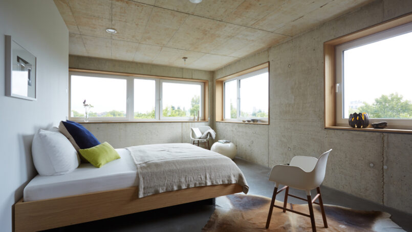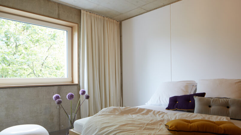 In our building, pure, original materials like concrete and wood meet modern design. Our love for detail is palpable – from pinboards made of 150-year-old oak wood, custom-made cupboards and beds, or decorative bowls made of concrete, individually and exclusively manufactured by hand. This is the place to be. The energy balance of the passive house building is also special, with a constant temperature of 20 degrees Celsius – without having to put the combined heat and power unit into operation.