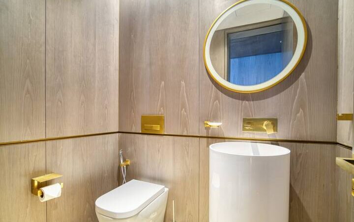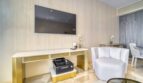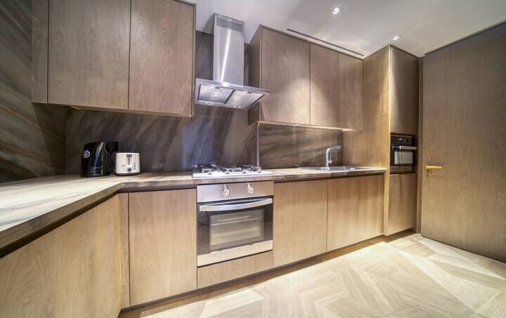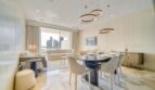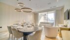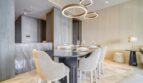The well-equipped kitchen will delight you with high-end appliances, granite countertops, and sleek wooden cabinetry. In handy service from the kitchen, you can serve meals on the modern dining table with comfortable seating for six.