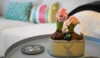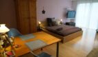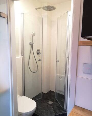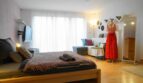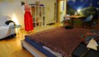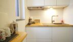 Hochwertige Ausstattung mit Naturholzboden und Fußbodenheizung. Direkter Zugang zu eigener funktioneller Mini-Küche und -Bad mit WC. Das Studio ist großzügig dimensioniert; Bad und Küche sind funktionell kompakt und schmal, siehe Fotos und Grundriss.