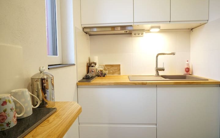 – elektrische Rolläden im Studio; Verdunkelungsrollo in der Küche