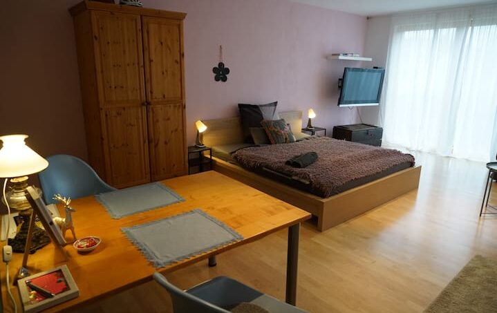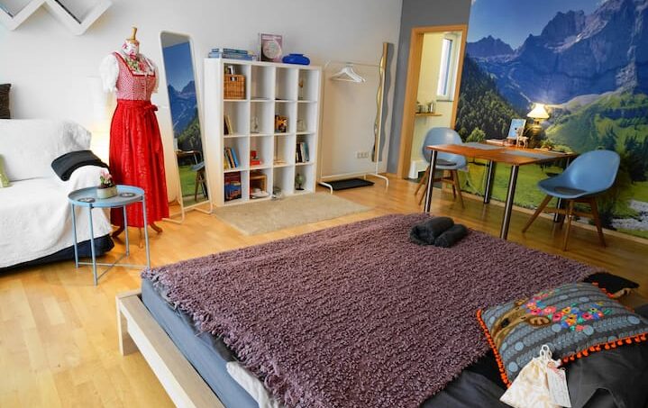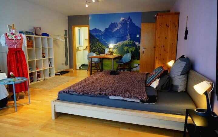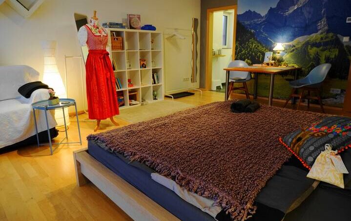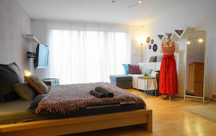 Luxuriöses Appartement mit eigenem Zugang, Mini-Küche und -Bad mit WC. Im OG mit Studio 1; Studio 3 im Dach. In unmittelbarer Nähe Supermarkt, Bäcker, Apotheke, Drogeriemarkt, Biomarkt, Mietwagen. Bushaltestelle 2 Minuten, direkte Busse zu BMW, Allianzarena (U Kieferngarten), MOC, MTC. Öffentliche Verkehrsmittel: Schwabing 20 Min., Innenstadt 30 Min., Oktoberfest 37 Min. Flughafen (MVV 60 Min/Auto 25). Perfekt für Autos; 5 Min zu A99 Salzburg/Nürnberg/Stuttgart. Kostenlose Fahrräder verfügbar.