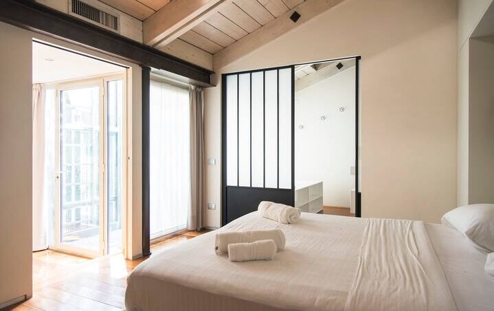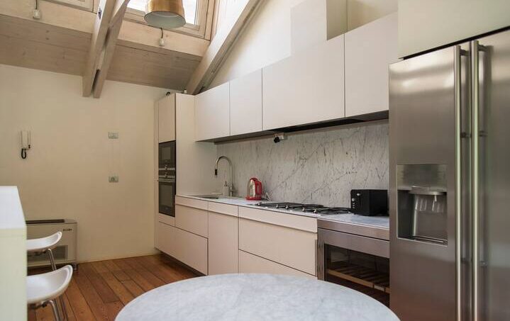 The Luxury Loft in Milan’s Old Town is within walking distance of the city’s most beautiful artwork, shopping streets, and trendy clubs in Milan. Decorated in a contemporary style, the apartment offers a perfect mix of luxury and comfort. Spanning 3 floors, it boasts a bright and spacious living room, a relaxation area with sauna, 3 bedrooms and 4 bathrooms equipped with a shower or bathtub. There is also a modern open kitchen and a small private green area.