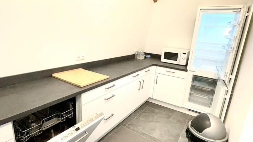 Fully equipped kitchen with dishwasher, stove, oven, microwave, fridge and freezer
